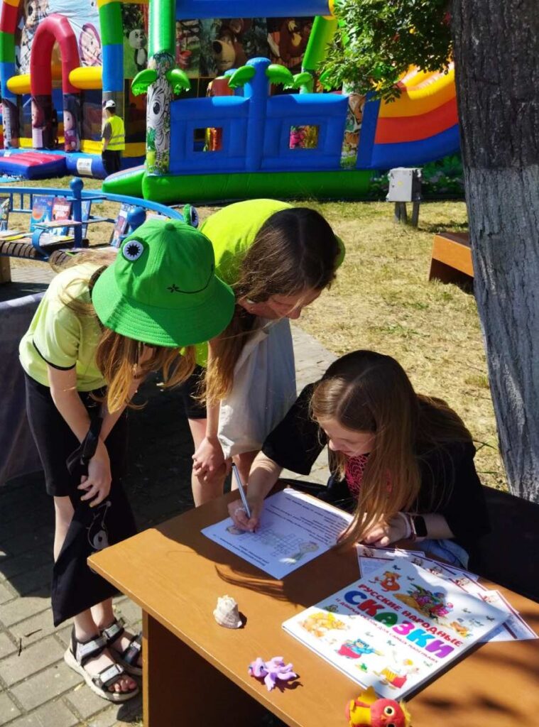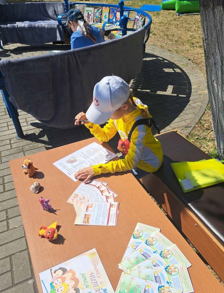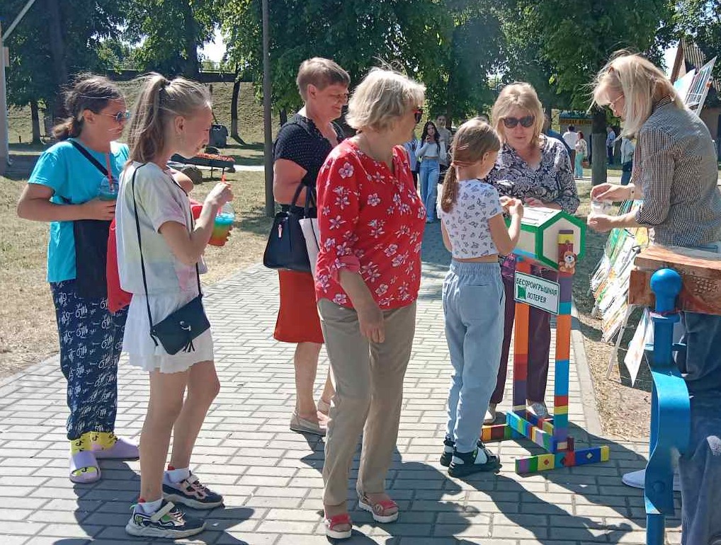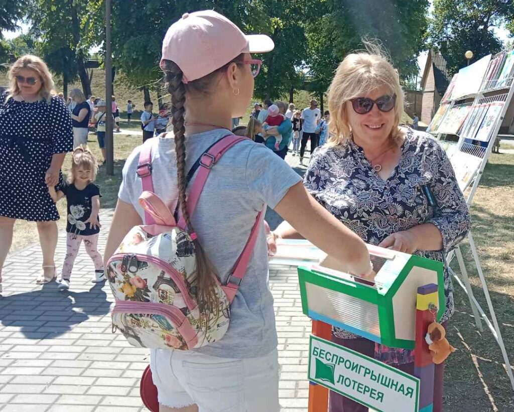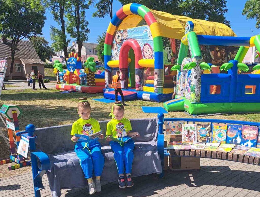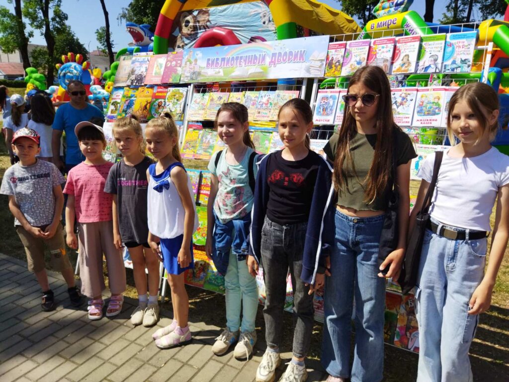 1 июня состоялся районный праздник, посвященный Дню защиты детей. Городские филиалы ГУК «Слонимская районная библиотека им. Я. Коласа» организовали в городском парке развлекательную площадку Библиотечный дворик «Книжная радуга планеты ДЕТСТВО» для всех желающих. Взрослые и дети смогли познакомиться с выставкой «Книжная радуга» филиала «Городская детская библиотека им. А. С. Пушкина», для любителей детской литературы организована «Читающая скамейка» с интересными книгами и журналами, работала беспроигрышная лотерея. Под кроной деревьев разместился «Уголок развлечений» с активными играми, а также с раскрасками, мозаиками, головоломками и интеллектуальными викторинами для ребят.