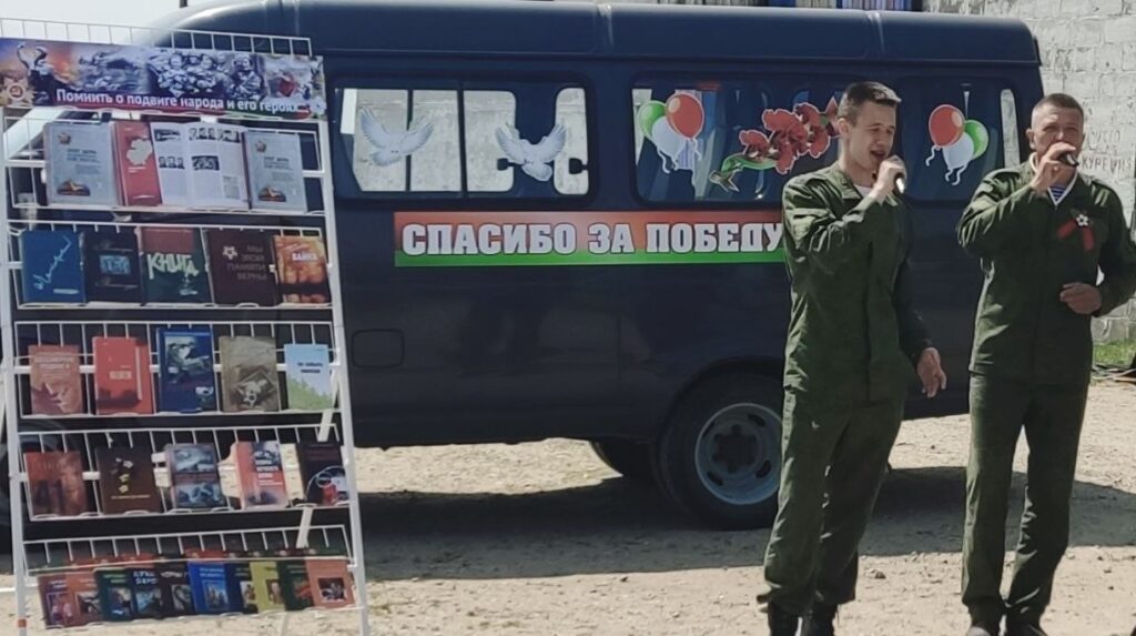 26 мая библиотекарь отдела обслуживания и информации ГУК «Слонимская районная библиотека им. Я. Коласа» совместно с сотрудниками ГУК «Слонимский районный центр культуры, народного творчества и ремесел», в рамках акции «Военная агитбригада: фронтовой экспресс», осуществили выезд по населенным пунктам Слонимского района. Жители деревень Ветевичи и Пасиничи радушно встретили работников культуры. Для них звучали песни, музыкальные произведения под баян, стихи, подготовлена книжная выставка «Помнить о подвиге народа и его героях…».
