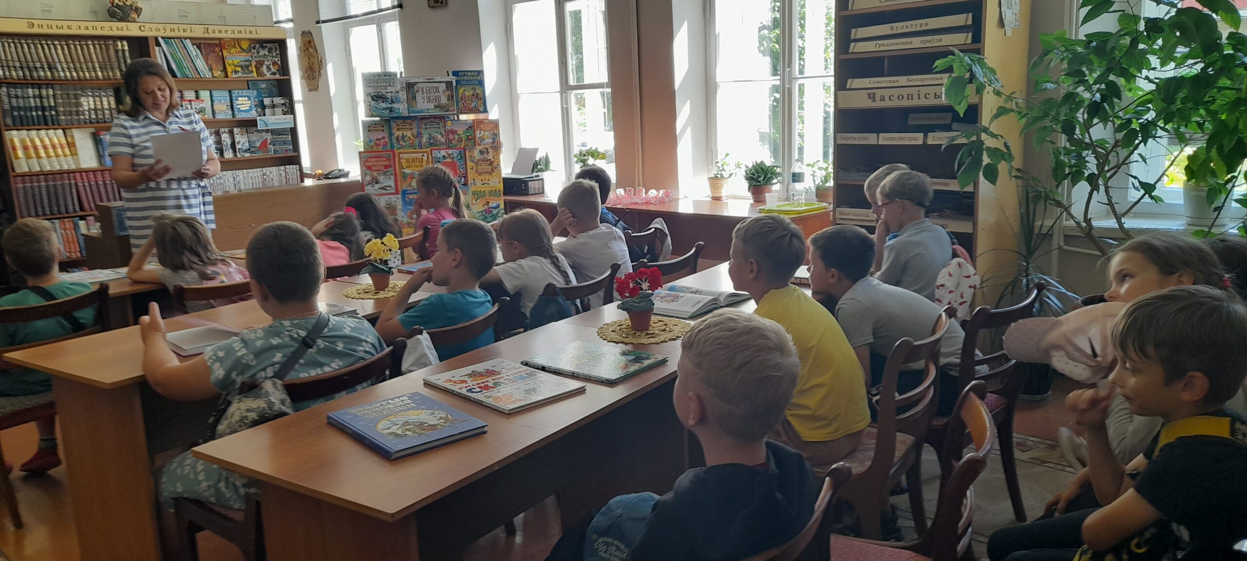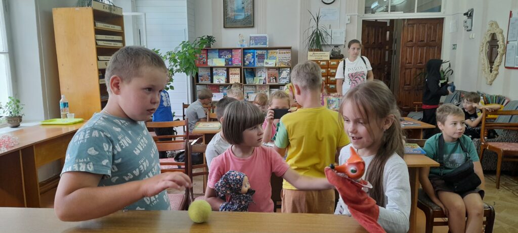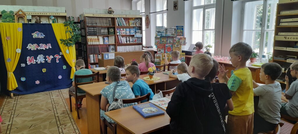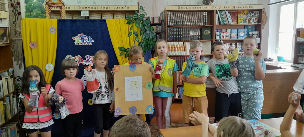 В филиале «Детская районная библиотека» детки из пришкольного лагеря «Цветик-семицветик» ГУО «Средняя школа № 9 г. Слонима» вместе с сотрудником библиотеки отправились в удивительный мир сказок, где узнали про народные и авторские сказки, а также чему они учат. Участвовали в различных конкурсах и викторинах: «Угадай сказку», «Досказать имя», «Забывалка», «Рисунок», «Сказочная почта» и др. Делая под музыку физкультминутку, ребята, оказавшись в сказочном лесу, побывали деревьями и птицами. Дети попробовали себя в роли настоящих артистов, инсценировав сказку «Колобок». В завершении мероприятия «Сказка! Я тебя знаю!», участники любительского объединения кукольного театра «Солнышко», показали спектакль «Кто сказал: «Мяу»?».