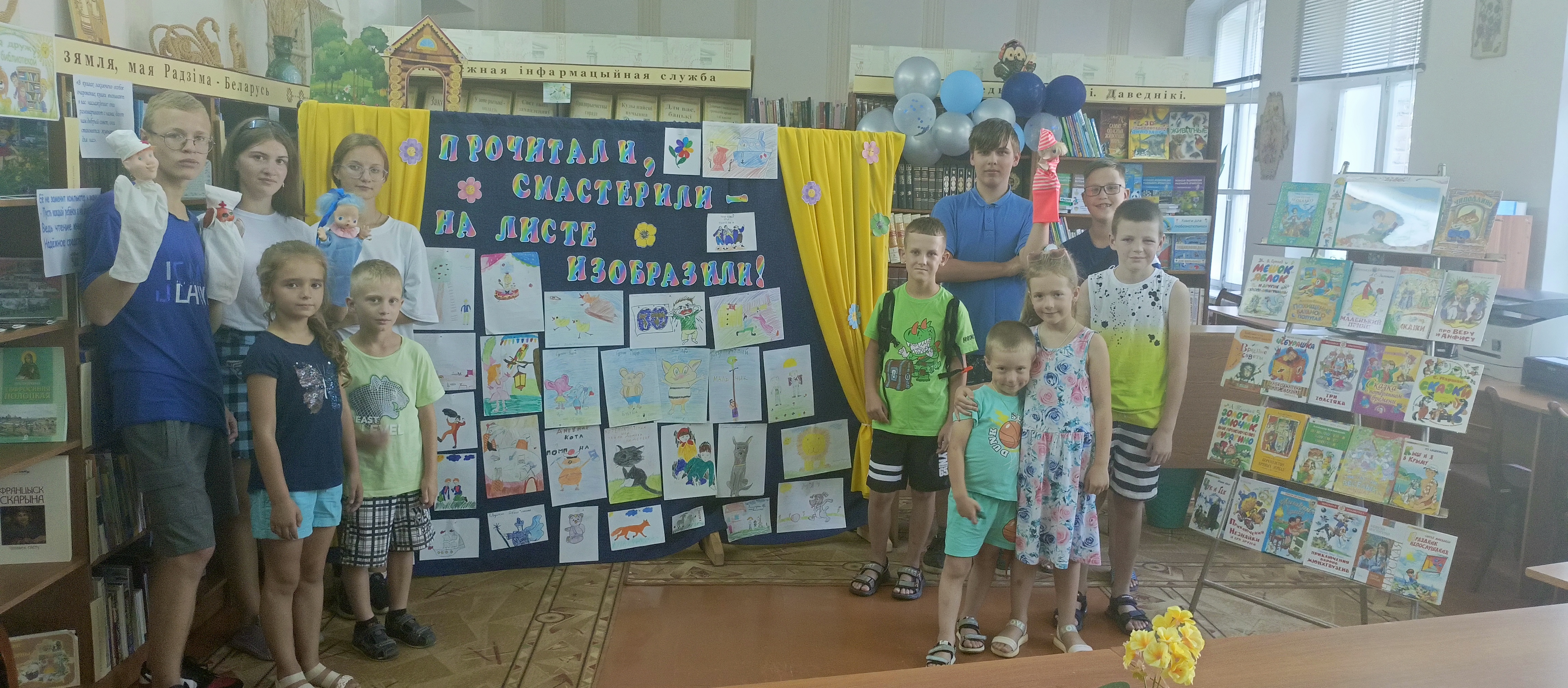 Артисты кукольного театра «Солнышко» подарили присутствующим спектакль «Чтоб расти нам сильными». На протяжении всего мероприятия звучала детская музыка. Подведение итогов конкурса летнего чтения прошло весело и интересно.