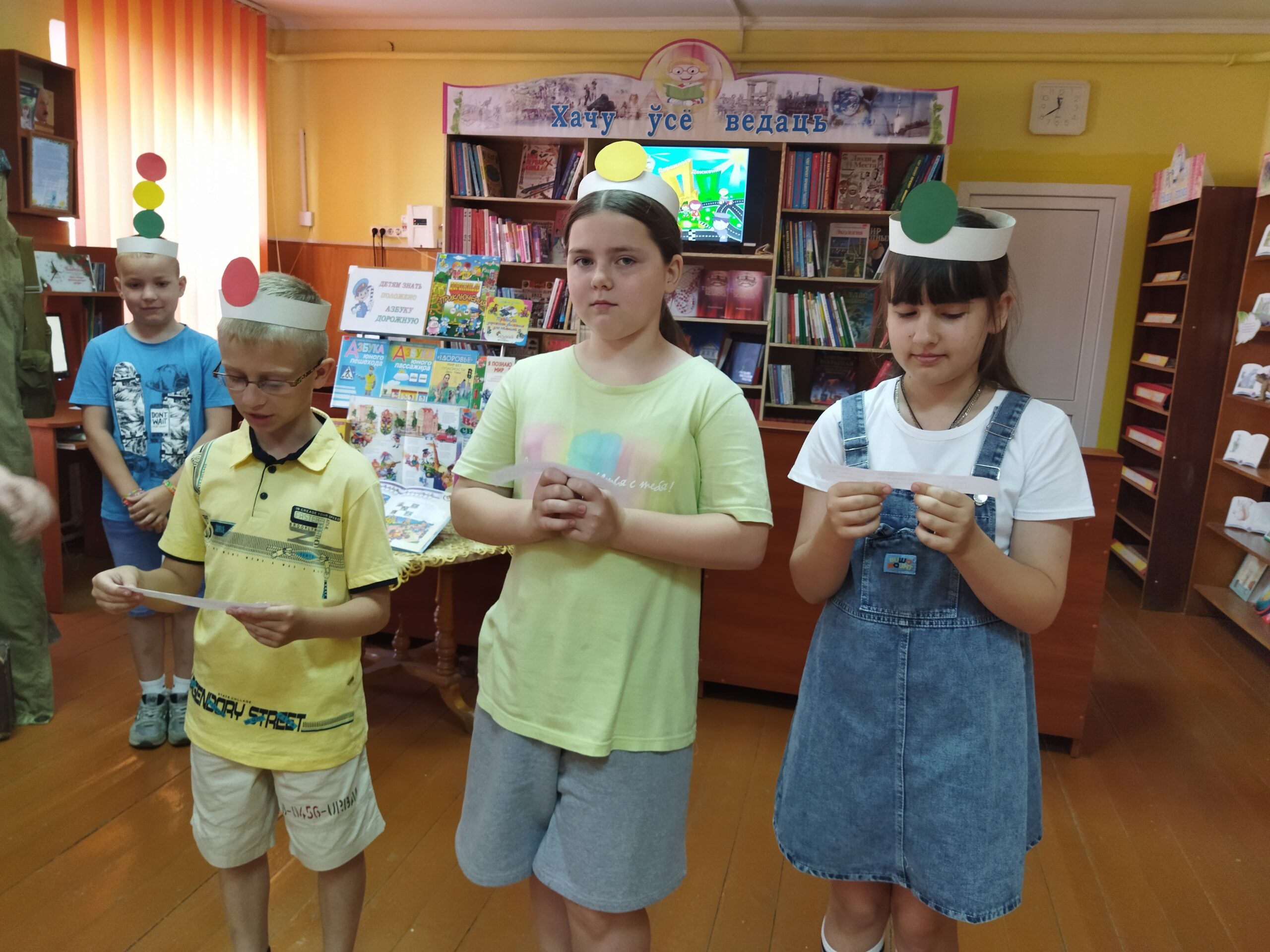 16 июня для ребят из лагеря «Галактика» при ГУО «Средняя школа № 5 г.. Слонима» в филиале «Городская детская библиотека им. А.С. Пушкина» прошел познавательный час «Правила дорожные, совсем не сложные». В ходе мероприятия юные читатели узнали, как появились правила дорожного движения, когда и где был изобретён первый светофор, узнали, что означают три цвета светофора. Дети отвечали на вопросы, сделали инсценировку сказки «Три огонька светофора», играли в «Разрешается – запрещается», отгадывали загадки. С помощью интерактивной игры дети закрепили полученные знания по правилам безопасного поведения на дороге, значения дорожных знаков. По окончании мероприятия дети сделали вывод, что не стоит подвергать свою жизнь опасности, необходимо соблюдать правила дорожного движения, быть осторожным на дороге.