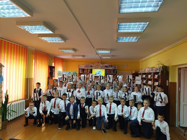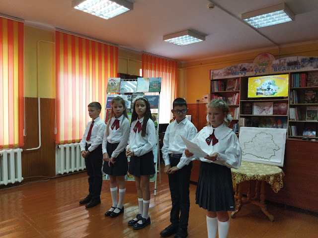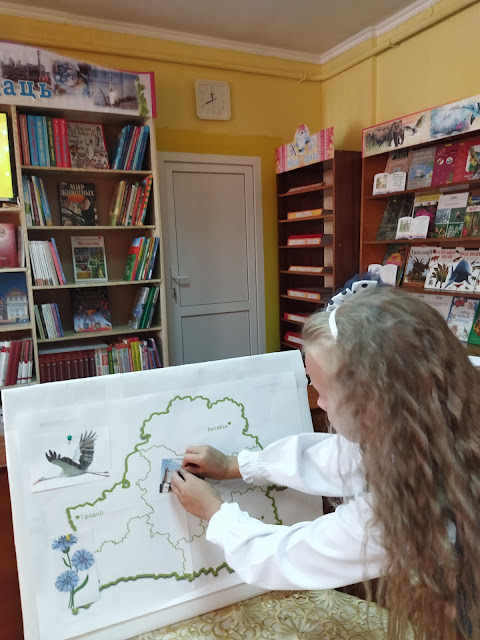 Сегодня в филиале «Городская детская библиотека им. А. С. Пушкина» для детей ГУО «Средняя школа № 2 г. Слонима» прошел праздник знаний «Вместе с книгой открываем мир». На мероприятии звучали стихи о Родине в исполнении детей. С помощью слайд-презентации «Беларусь мая Радзіма» ребята путешествовали по родной стране. По ходу мероприятия дети оформляли интерактивную доску Беларуси, дополняя её белорусскими достопримечательностями. День знаний получилс я очень интересный и познавательный.