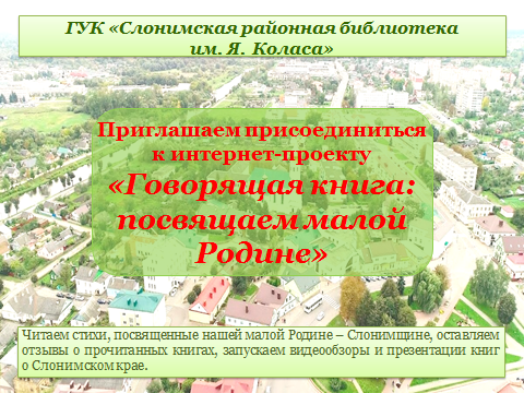 Інтэрнэт-праект «Кніга, якая гаворыць: прысвячаем малой Радзіме», ДУК «Слонімская раённая бібліятэка імя Я. Коласа»